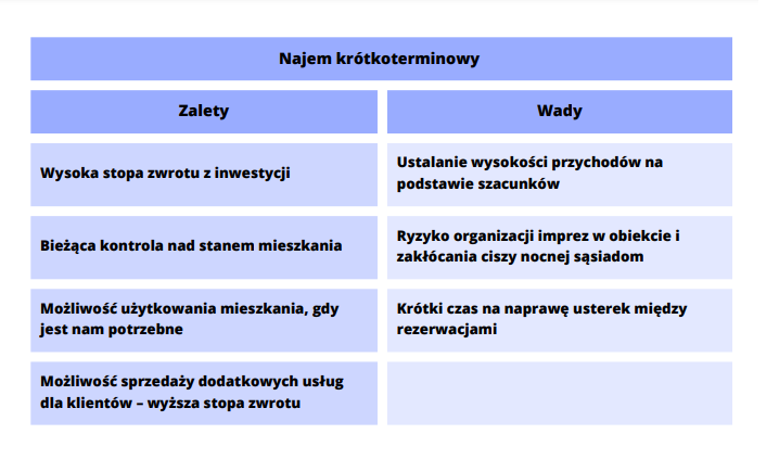 Zalety najmu krótkoterminowego.